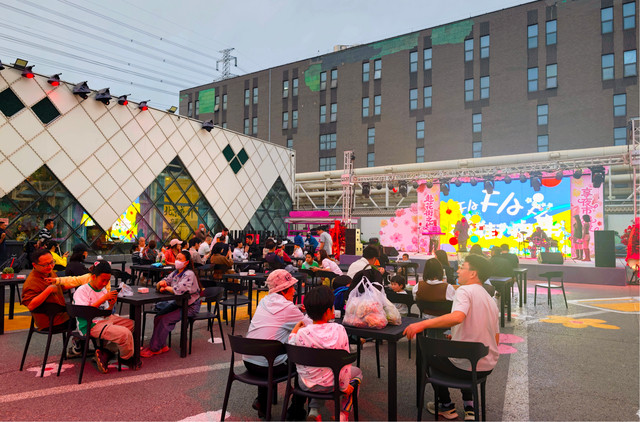 夜幕莅临,华灯初上。中心舞台区,民谣演唱、主题互动等夜间演艺演出,市民或三五成群,或拉家带口,在花景中徐徐溜达,时而安身拍照,时而试吃好意思食,时而随音乐轻轻扭捏。